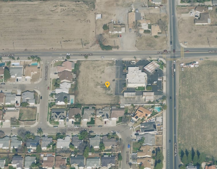 L Shaped 1.32 1.32-acre lot, Per Tax Records; Easy Access from two streets. Located off the corner of Avenue 240 and N West St; Surrounded by Dense Residential Development Around, Busy Traffic, Behind Existing Chevron Gas Station. L- shaped Lot.