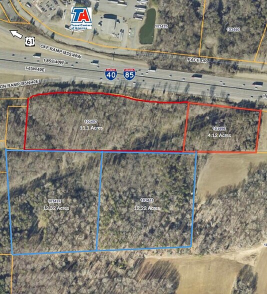 15.22-acre multiple lots strategically situated just off the I-40/I-85 interchange. Exit 138. 1500 feet of highway frontage.Flat with trees. Uninterrupted visibility to the 124,000 vehicles passing daily.City water, sewer, and natural gas.