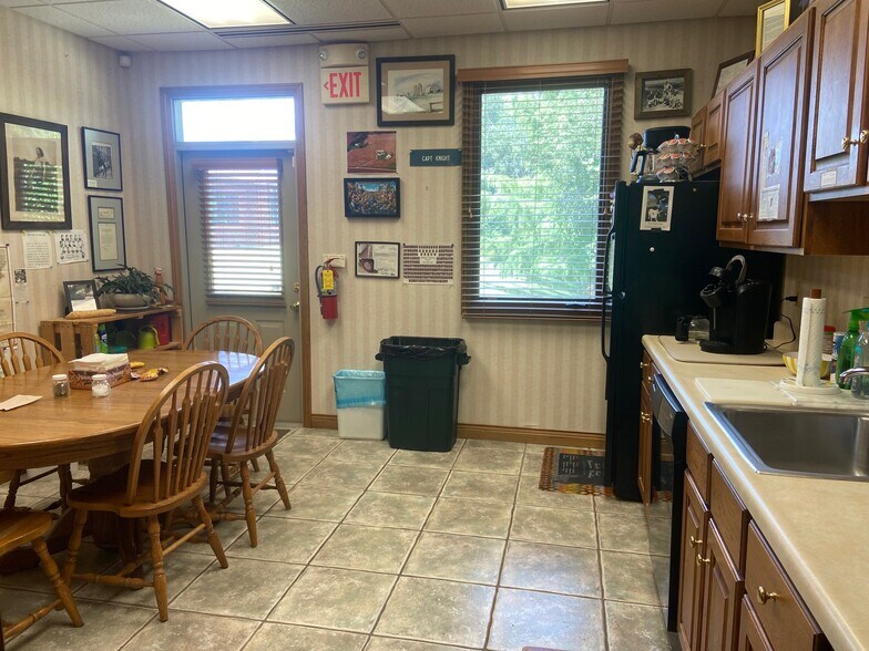 Sizeable waiting room, 2 large reception/open work areas (designed to be split into 4 private offices if needed), breakroom with kitchenette and rear door to lake,