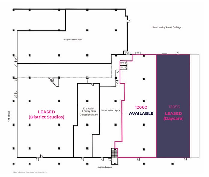 Open concept floorplan with high ceilings, 2 washrooms and HVAC ducting throughout Join nearby businesses including a new daycare (coming soon), District Studios (coming soon) VA Café, Olia Restaurant, K&K Mart & Family Pizza and Value Liquor Hub Next to the new Citizen on Jasper residential tower and 1 block from the Oliver Exchange Building and OEX 2 High vehicle and pedestrian traffic – fronting Jasper Avenue Excellent opportunity for retailers, specialty food services, indoor recreation and medical users