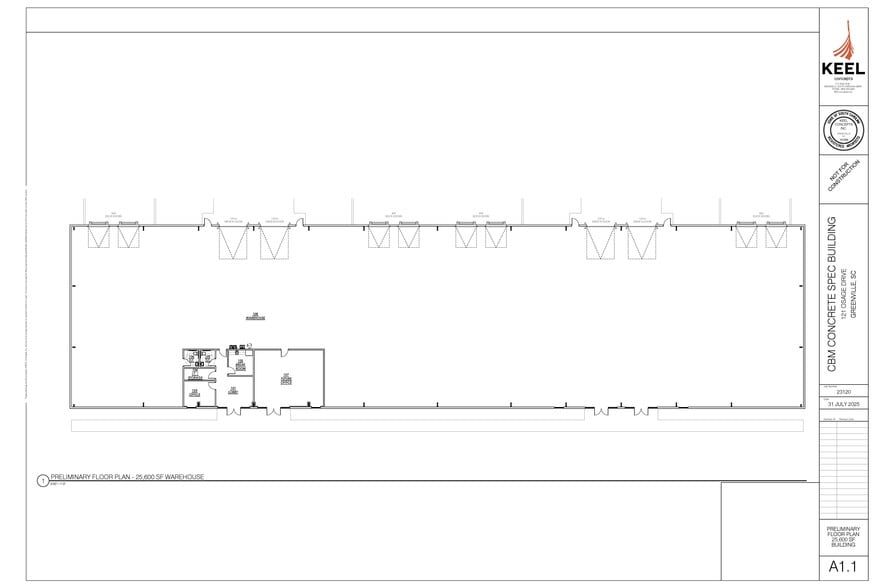 121 Osage Drive is a brand-new industrial/flex space in a high-growth Greenville submarket. The ±25,600 SF metal building is divisible into four suites, each with dedicated storefront entrances and window lines, allowing for customized office build-outs. With eight dock-high doors and four 12’ x 14’ roll-up doors, the facility is designed for efficient logistics and operational flow. Tenants will benefit from 23-foot clear heights, 3-phase power, and a robust 6-inch concrete slab suitable for heavy equipment and storage. Located adjacent to Donaldson Airport and minutes from I-185 and I-85, the site offers excellent access to regional transportation networks and is surrounded by major industrial users including Lockheed Martin and Michelin. The property’s inclusion in an Opportunity Zone may offer additional incentives for qualifying tenants. Whether for distribution, light manufacturing, or flex office use, 121 Osage Drive delivers modern infrastructure and strategic positioning in one of the Southeast’s most dynamic industrial markets.