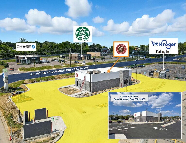 Grand Opening: Sept 29th 2025! This brand-new Chipotle property presents a premier passive investment opportunity, featuring state-of-the-art construction with the high-performing Chipotlane digital drive-thru format. The asset is secured by a 15-year absolute NNN corporate lease backed by Chipotle Mexican Grill, Inc. (NYSE: CMG), one of the nation’s most successful fast-casual restaurant operators with more than 3,700 locations nationwide. Chipotle’s strong digital sales platform and convenient drive-thru model make it both e-commerce and recession-resistant, ensuring reliable tenant performance. The property benefits from a prime Sharonville location, positioned as a Kroger outparcel along heavily trafficked U.S. Route 42 with excellent visibility in a dense, affluent suburb where average household incomes of $150,000. Supported by the growing Cincinnati metro, which is projected to gain nearly 248,000 new residents by 2050, this offering combines long-term income stability with strong market fundamentals.