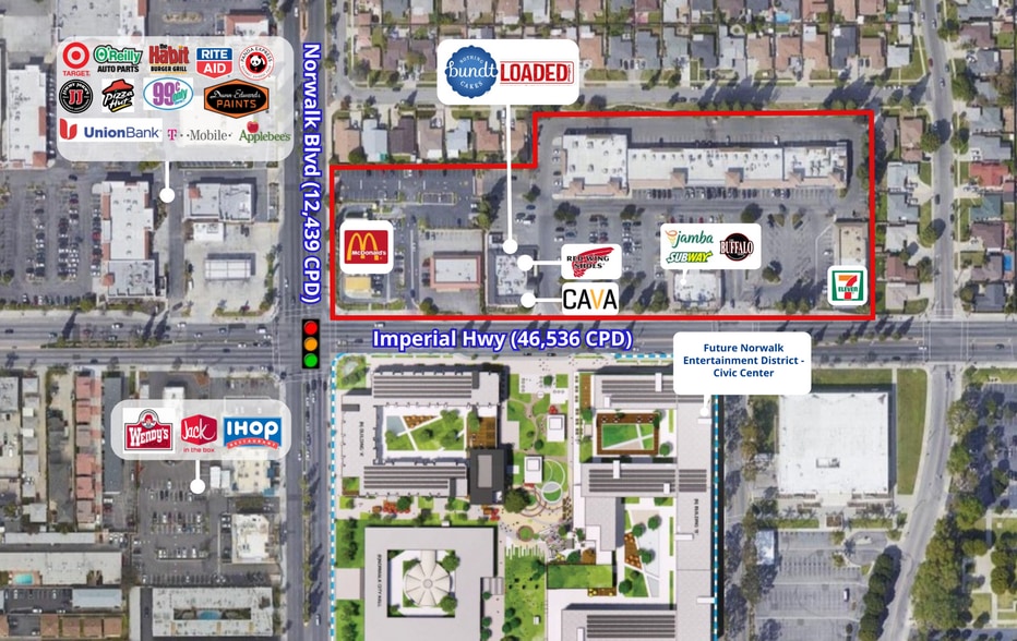 - Traffic Counts: 58,000 cars per day (Imperial Hwy & Norwalk Blvd)