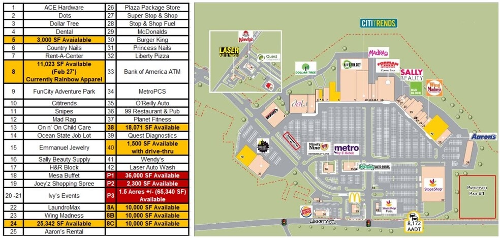 • Anchored by Super Stop and Shop and Fun City Adventure Park with national tenants including Ace Hardware, Dollar Tree, Planet Fitness, and OReilly Auto Parts. • Approx. 114,000 people within a 3-mile radius. • Located at a signalized intersection with a large pylon sign. • One of the only shopping centers within a 2.5-mile radius.