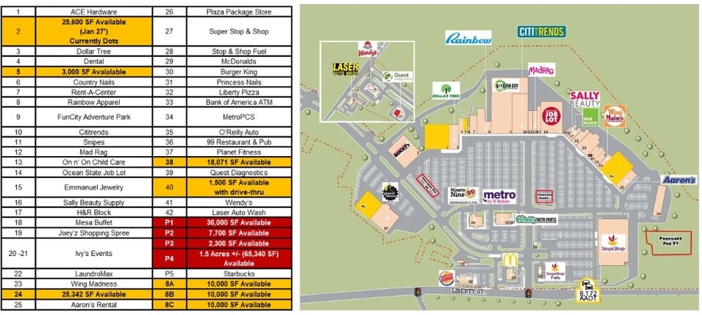 • Anchored by Super Stop and Shop and Fun City Adventure Park with national tenants including Ace Hardware, Dollar Tree, Planet Fitness, OReilly Auto Parts, and Starbucks. • Approx. 114,000 people within a 3-mile radius. • Located at a signalized intersection with a large pylon sign. • One of the only shopping centers within a 2.5-mile radius.