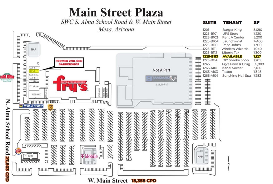 | Center Properties | 8 | Cross Streets | Alma School Rd |