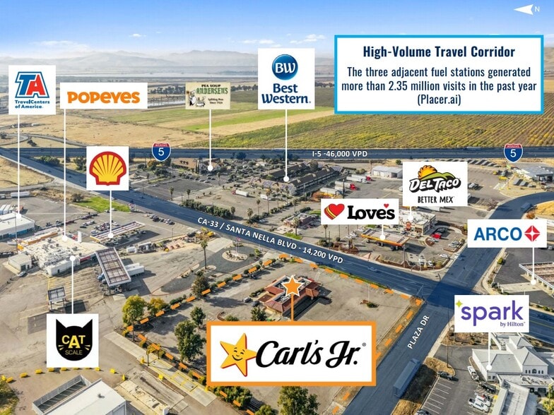 This offering presents a truly passive investment opportunity featuring an absolute triple net lease with zero landlord responsibilities and a long operating history dating back to 1989, demonstrating the property’s stability as a community staple within Santa Nella and a consistent stop for regional travelers. The site is leased to Carl's Jr., a nationally recognized brand operated by CKE Restaurants Holdings Inc. with more than 4,000 locations worldwide, providing strong corporate guarantee. Strategically positioned just off Interstate 5, one of California’s primary north–south corridors carrying over 46,000 vehicles daily between Los Angeles and San Francisco, the property benefits from exceptional visibility and travel demand. Carl's has recently subleased a portion of their parking lot to have 4 brand new electric vehicle charging stalls to act as an additional draw for customers. The location is also enhanced by its proximity to iconic roadside attractions including Pea Soup Andersen’s and Hotel Mission De Oro, reinforcing its position within a well-known tourist stop, while the expansive 2.3-acre parcel offers additional long-term upside through potential pad development or EV charging infrastructure.
