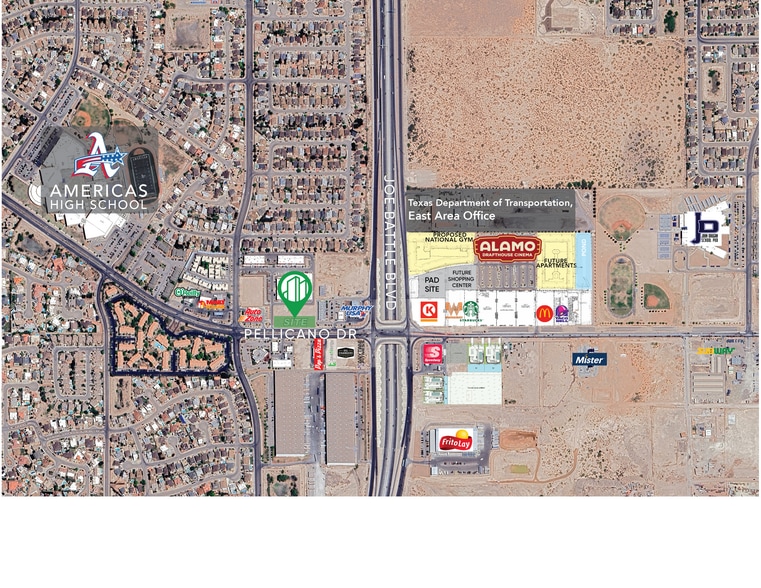 Introducing a prime commercial land development opportunity situated at 12285 PELLICANO DR, EL PASO, TX 79938. Neighboring AutoZone, this 1.55-acre property boasts a strategic location at the intersection of Joe Battle, Pellicano, and Bob Hop Dr., offering easy access to Interstate 10 and the Zaragoza International Border Crossing. Nestled amidst thriving residential, apartment, and commercial developments, this parcel is an ideal investment for various business ventures. The seller is open to subdividing the lot to suit your needs. Noteworthy is the new Alamo Drafthouse Cinema recently opened across the street at the Monteverde development, enhancing the area's appeal. Benefit from high traffic counts with Pellicano Dr. at 26,380 VPD and Joe Battle Blvd. at 92,940 VPD (TDT). With a demographic snapshot projecting a population of 82,336 within a 3-mile radius and an average household income of $81.9k, this property promises a lucrative opportunity for the savvy investor. Get in touch today for more details!