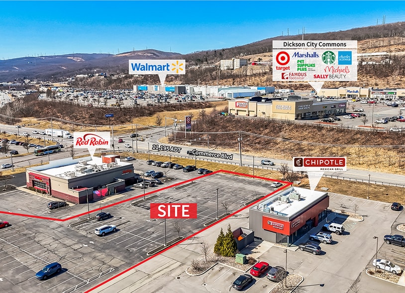 Located next to Red Robin & Chipotle Seeking national QSR, medical, and retail user(s) Proposed development site located alongside desirable Commerce Blvd. in Dickson City Ownership will consider ground lease or build to suit opportunities