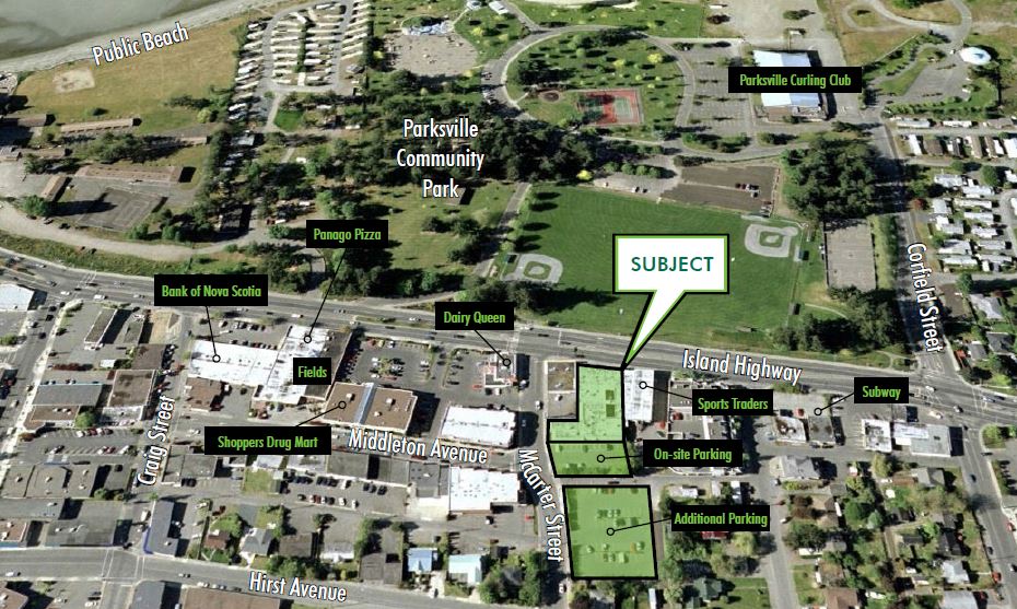 FOR LEASE CENTRALLY LOCATED BUILDING WITH AMPLE PARKING RENTABLE AREA: Up to 13,885 SF LEASE RATE: $16.00 per sq. ft. OPERATING COSTS & TAXES: $5.25 per sq. ft. (2016 estimate) ZONING: C3 - Commercial Downtown AVAILABLE: Immediately OPPORTUNITY Rare opportunity to lease a large, single tenant building comprised of approximately 13,885 square feet of prime retail space in downtown Parksville. The subject property lies on the south side of the Island Highway directly across from the popular waterfront Community Park. It is in close proximity to multiple oceanside resorts and activities and offers ease of access to major transportation routes. This is an ideal opportunity for retailers looking to locate in the highly sought after Parksville region on Vancouver Island. HIGHLIGHTS - Ample parking both on site and in lot directly next to the property - Exceptional signage opportunities with frontage on both the Island Highway and McCarter Street - One of the best retail areas in Parksville with high pedestrian and vehicular traffic - Directly across the street from the popular Community Park which consists of the main public beach in Parksville, the curling club, baseball diamonds, tennis courts, kids play pool, etc.