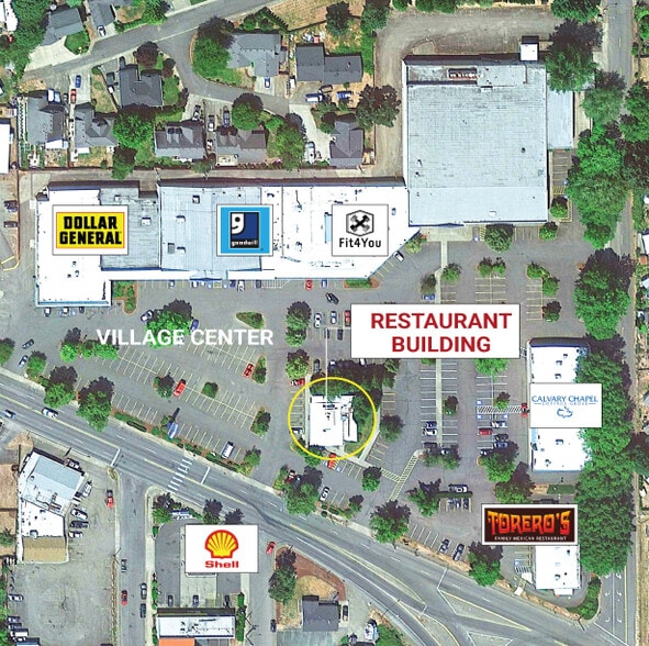 2,840 SF stand-alone restaurant building located in Village Center with excellent visibility along Pacific Highway and easy access to I-5. The property offers on-site parking, prominent signage, and flexible C-2P zoning suitable for restaurant, drive-thru, coffee, or similar commercial uses. Co-tenants include Dollar General and Goodwill. New HVAC installed in 2023. Ideal for an owner-user seeking a highly visible, well-located building in Cottage Grove.