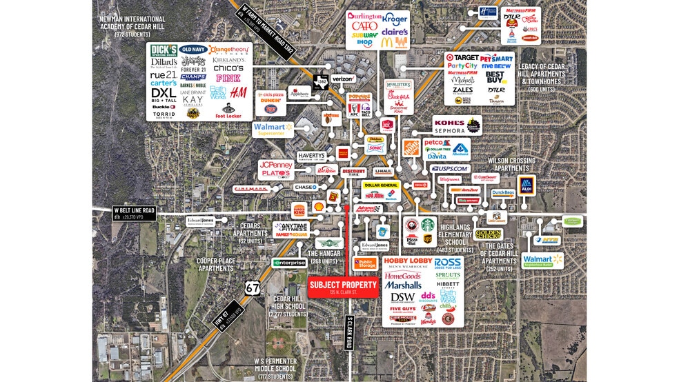 - Hard Corner Location w/ Multiple Entry Points – On Belt Line Rd/Clark St. w/ Easy Access to US Highway 67