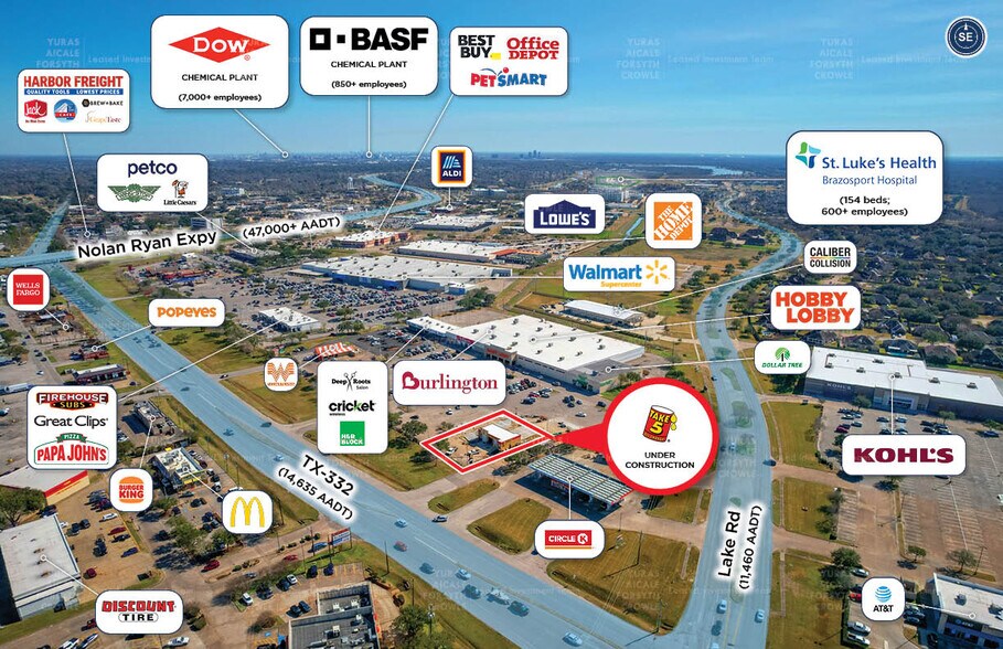The site benefits from proximity just off Nolan Ryan Expressway, which carries more than 47,000 vehicles per day, enabling the property to capture both local and commuter traffic.