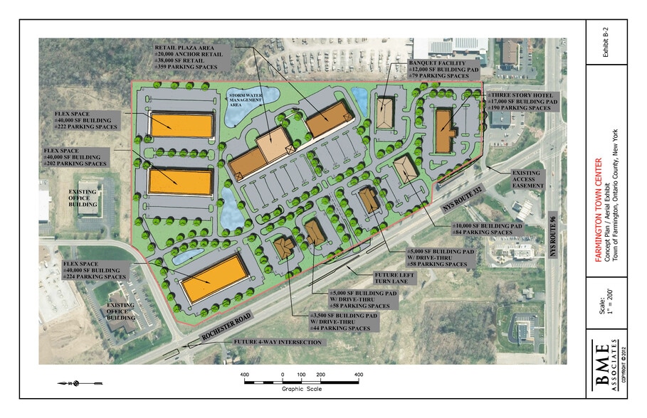 38 acres of mostly vacant commercial development land in Farmington, NY. The property is comprised of three contiguous parcels located at the northeast corner of the intersection of NYS Routes 332 and 96. There is approximately 1,500 linear feet of frontage along northbound 332 and 500 linear feet of frontage along Corporate Drive, daily traffic counts exceed 21,000 ADT along Rte 332 and 20,000 ADT along Rte 332.