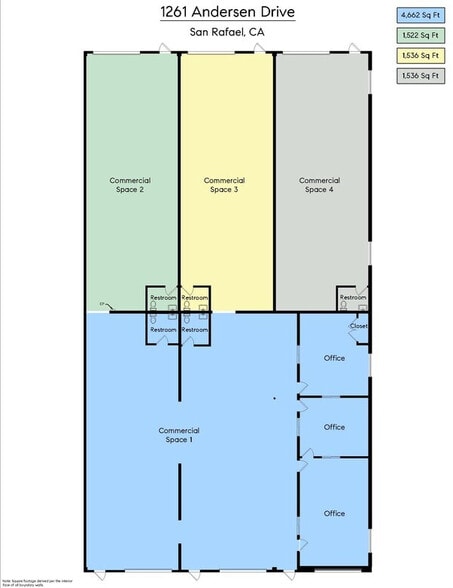 Flexible Industrial & Commercial Space for Lease | San Rafael, CA Position your business for success at 1261 Andersen Drive, a highly visible and versatile industrial/commercial property offering up to ±9,256 SF, with the ability to lease smaller, functional suites designed to scale with your operation. The building can be leased as a whole or demised into individual spaces ranging from ±1,522 SF to ±4,662 SF, making it ideal for light industrial users, contractors, service providers, creative studios, and distribution-oriented businesses. Available Space Options ±4,662 SF industrial/commercial space with dedicated office build-out ±1,522 SF – ±1,536 SF individual commercial/industrial suites Flexible configurations available to accommodate growth or phased occupancy Property Highlights Excellent visibility with easy access to and from neighboring freeways Quick access to the Richmond–San Rafael Bridge, providing seamless connectivity to the East Bay Ample on-site parking for employees and visitors Multiple professional tenants already occupy the building, creating a strong, business-oriented environment with great neighboring users Existing office space and multiple restrooms throughout the property Efficient layouts well-suited for production, storage, light manufacturing, or service-based uses Ideal For Light manufacturing & assembly Contractors & trade services Warehouse / distribution Creative or tech-enabled industrial users Businesses seeking flexible space in a strategic Marin County location With its prime access, strong visibility, ample parking, and adaptable floor plan, 1261 Andersen Drive offers a rare opportunity to secure flexible industrial space in one of San Rafael’s most established commercial corridors. Contact us today to discuss available configurations or to schedule a tour.