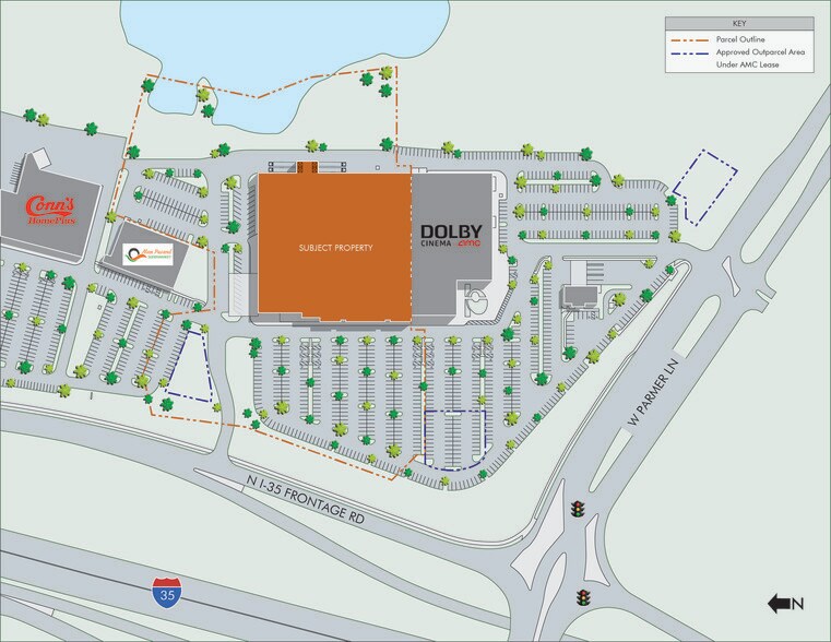CBRE IP Retail Austin, along with the National Retail Partners, is pleased to offer the opportunity to acquire the fee simple interest in a portion of the former Sears Grand in north-central Austin. Located at the northeast corner of east Parmer Lane and Interstate 35, the property is comprised of a 121,880 square foot building (per CAD) with clear heights of 19 to 22 feet, an awning for drop-off and pick-up, and four dock-high doors in the rear. The building is constructed of tilt concrete wall, precast and brick facade with metal awning. The roof is TPO with access for mechanical on the roof. The parking lot is mostly asphalt with approximately 437 parking spaces (3.8:1,000 parking ratio).