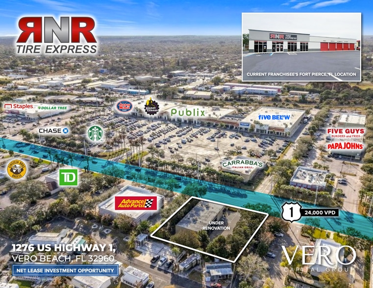 Vero Capital Group is pleased to present the opportunity to acquire a single tenant net leased RNR Tire Express located at 1276 US Highway 1 in Vero Beach, Florida. The existing building is being fully retrofitted and renovated for RNR, with an anticipated opening in June 2026.