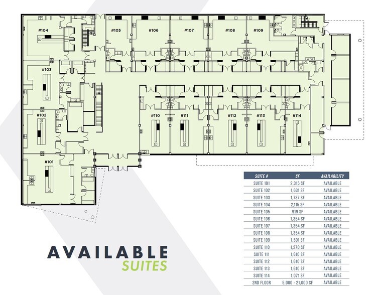 | 1st Floor, Ste 101 | 2,315 SF | Negotiable | Upon Request Upon Request Upon Request Upon Request | Office | - | 2026-10-01 |