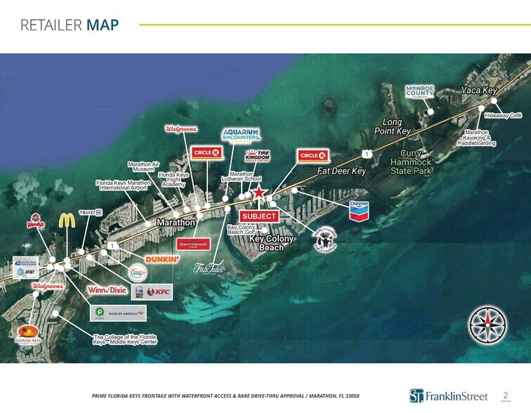 - Broad User Appeal: Ideal for QSR, coffee, banking, medical/urgent care, pharmacy, and convenience-oriented tenants seeking entry into the Florida Keys