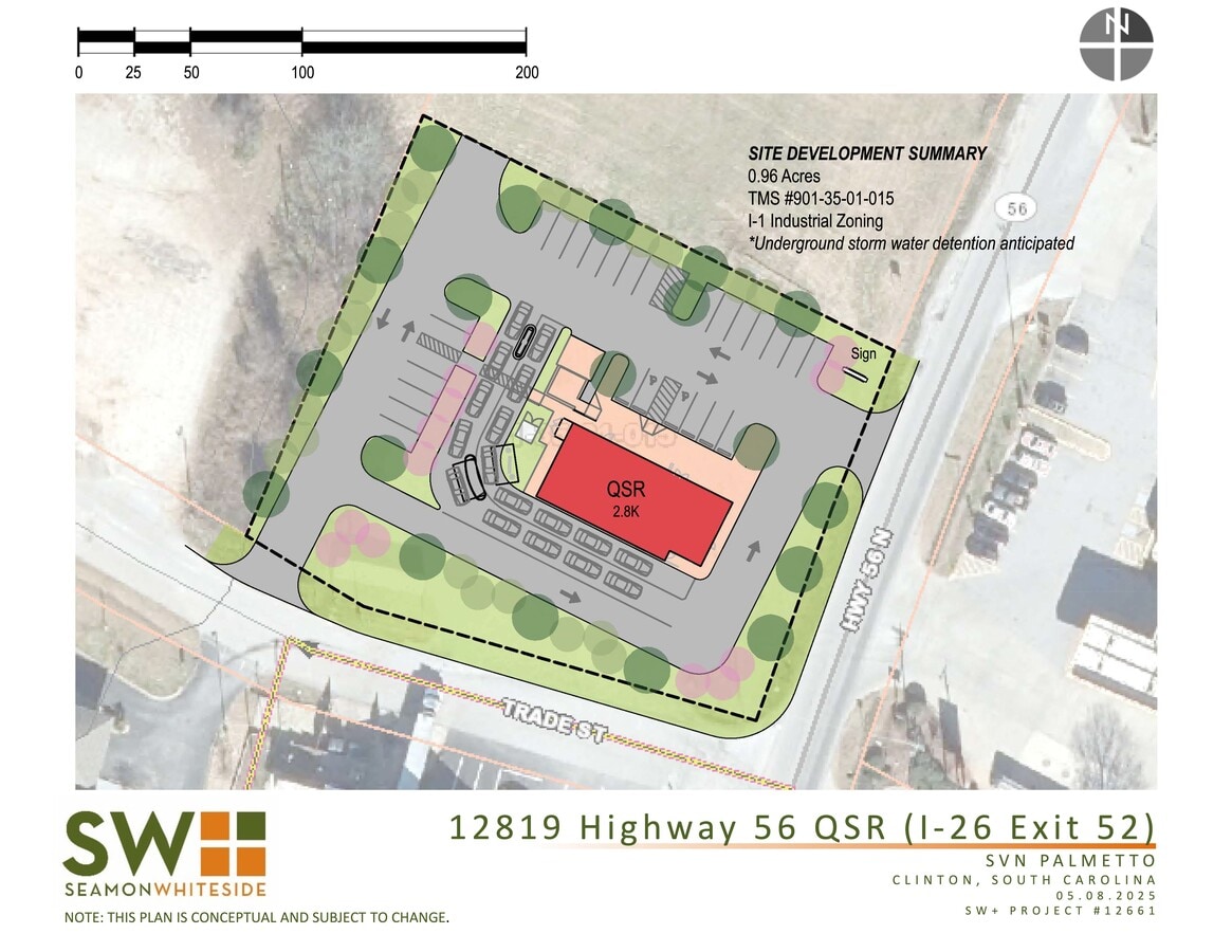 Reedy River Retail at SVN | Palmetto is pleased to present a premier ±.96-acre site available for build-to-suit or ground lease. Site is favorably positioned at the intersection of HWY 56 and I-26 (Exit 52) in Clinton, SC. This high-visibility site is ideal for a QSR development and offers direct access to a heavily trafficked corridor connecting I-26 and I-385, the two primary arteries linking GreenvilleSpartanburg, Columbia, and Charleston. Clinton serves as a vital midpoint between these major markets, making Exit 52 a consistent stopover for regional travelers and commercial drivers alike.