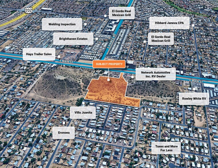 Marcus and Millichap is pleased to exclusively present for sale +/- 9.88 acres of commercial vacant land at 129 N 82nd Place, Mesa, AZ. Site is located in a County Island within the City of Mesa planning area and is zoned for high density infill residential. The parcels are a mix of R-5, R1-8 & C-3 zoning, and partially subject to Hillside Ordinance. Site has steep to rolling to flat topo. The City of Mesa is the water and sewer provider. Buyer to verify all utility locations and capacity levels during due-diligence period. City of Mesa focuses on economic development through various initiatives, including support for major industries like aerospace, healthcare, and technology. The city offers incentives for businesses, a skilled workforce, and resources for startups and expansions to foster growth and attract investments. Two major airports and employment bases: Falcon Field and Phoenix Mesa Gateway Airport. Mesa is the central city of the East Valley of the Metro Phoenix area. The city saw a 38% growth for median earnings between 2019 and 2023, the second highest in the nation. It is bordered by Tempe on the west, the Salt River Pima- Maricopa Indian Community on the north, Chandler and Gilbert on the south and Apache Junction on the east, stretching over 133 square miles and is larger than Miami, Minneapolis, Atlanta and St.Louis. Access to three major freeways: Loop 101, Loop 202 (Red Mountain Freeway an