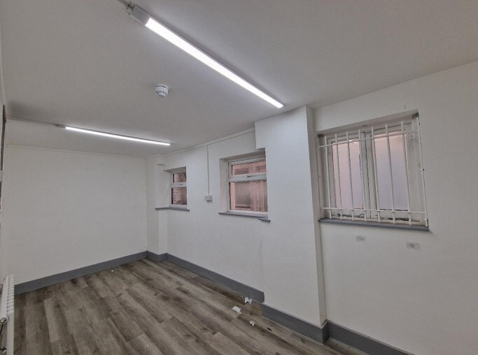 The available commercial accommodation comprises 224 sq ft at upper ground level and 691 sq ft at lower ground level, delivering a practical and flexible layout suited to a variety of Class E(a) users. The entrance provides striking volume with a double-height ceiling, enhancing visibility and customer impact. Internally, the space transitions into a mix of open operational areas and multiple treatment rooms, supported by modern essentials including air conditioning, a mechanical shutter, a kitchenette and WC. The configuration allows for efficient workflow while offering adaptability for retail, wellness, grooming, or other service-orientated occupiers