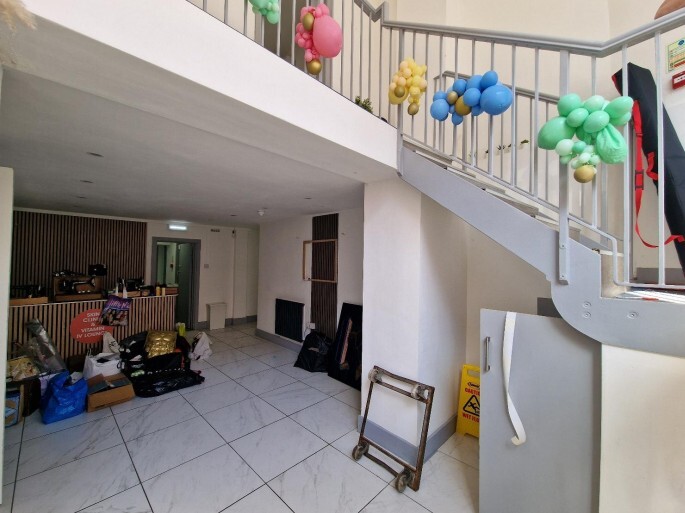 The available commercial accommodation comprises 224 sq ft at upper ground level and 691 sq ft at lower ground level, delivering a practical and flexible layout suited to a variety of Class E(a) users. The entrance provides striking volume with a double-height ceiling, enhancing visibility and customer impact. Internally, the space transitions into a mix of open operational areas and multiple treatment rooms, supported by modern essentials including air conditioning, a mechanical shutter, a kitchenette and WC. The configuration allows for efficient workflow while offering adaptability for retail, wellness, grooming, or other service-orientated occupiers