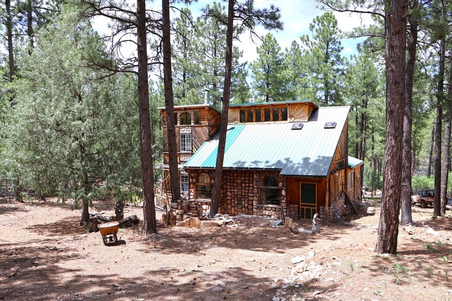Experience the lush Sherwood Forest Subdivision in Torreon, NM! This carefully crafted 2-bedroom, 1-bath home sits on nearly half an acre surrounded by tranquil forest. Zoned to allow for commercial or residential use, this property offers flexibility for a variety of possibilities—whether you envision a mountain getaway, a retreat, or a primary residence with added business potential. Enjoy the warmth of the kiva fireplace downstairs, complemented by a spacious living area and den. Upstairs, you’ll find a large primary bedroom and a versatile landing/loft space. The home also features a detached carport and two attached storage spaces for convenience. Step outside to an open deck overlooking a generous backyard complete with a large pond, creating a serene outdoor setting.