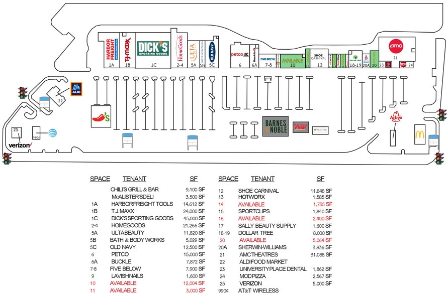 - #1 RANKED POWER CENTER IN OVER 50 MILES PER PLACER.AI - HOME TO WELL-PERFORMING LOCATIONS OF T.J.MAXX, HOMEGOODS, DICK’S SPORTING GOODS, AND FIVE BELOW - OLD NAVY, ULTA, BATH & BODY WORKS, HARBOR FREIGHT, AND BUCKLE ALL OPENED IN 2023 - UNIVERSITY PLACE DRAWS CUSTOMERS FROM OVER 60 MILES AWAY - MULTIPLE SPACES AVAILABLE - CALL BROKER FOR DETAILS