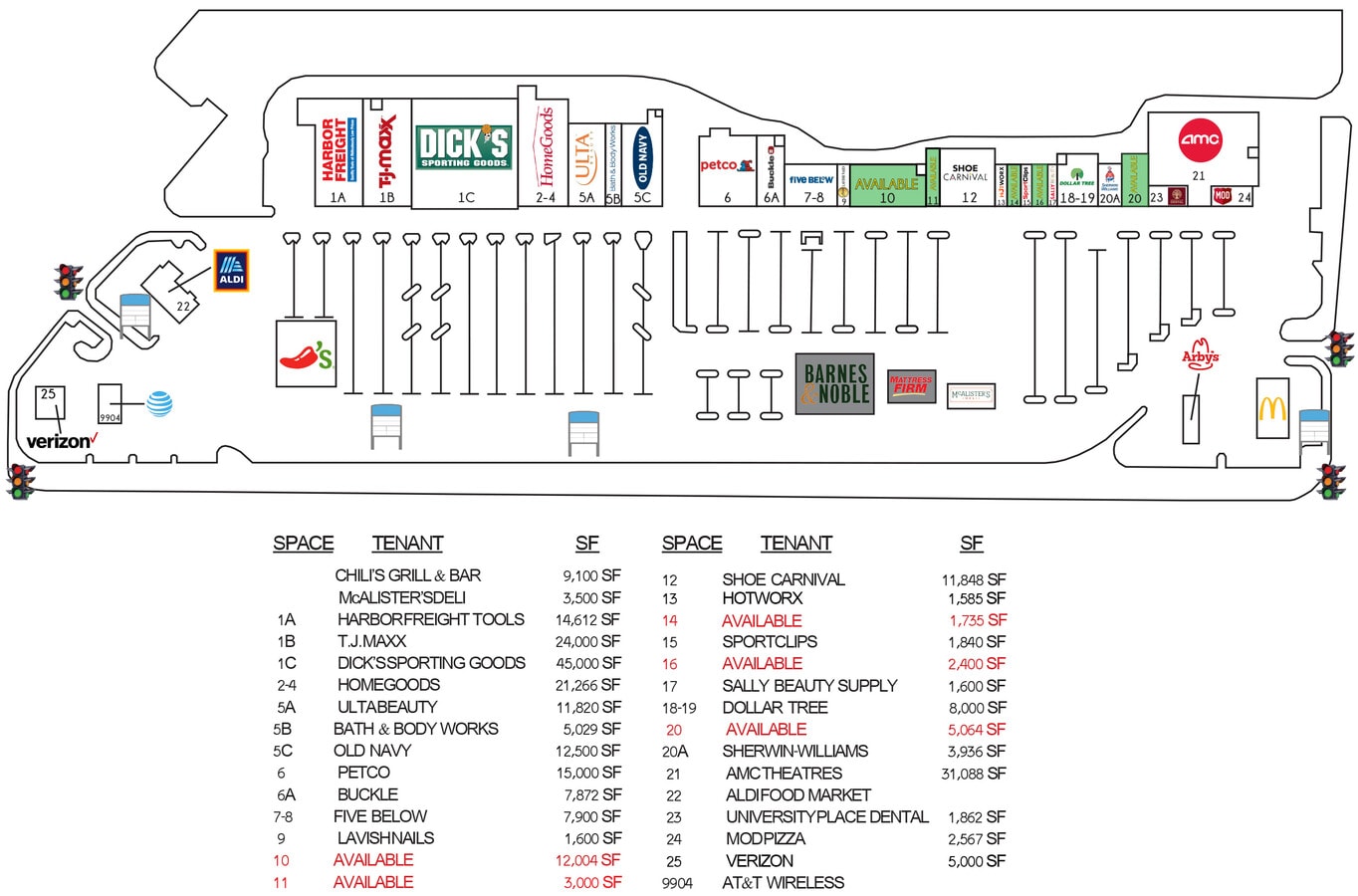 | Total Space Available | 24,203 SF | Frontage | Highway 13 |