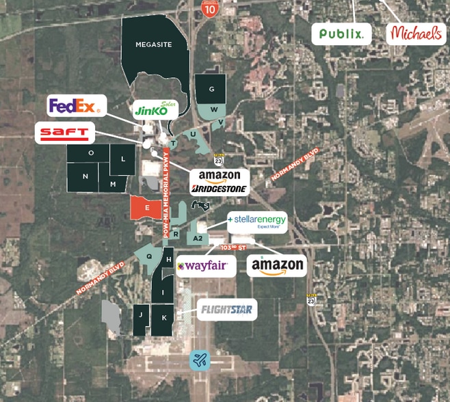 - Immediate access via the newly completed highspeed I-10 interchange to I-75, I-295, and I-95.