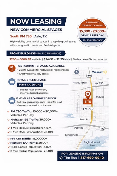 Azle retail complex 13008 S FM 730 2,200 SF of Flex Space Available in Azle, TX 76020