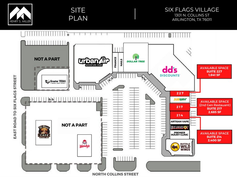 Six Flags Village 1301-1303 N Collins St 1,641 - 6,726 SF of Retail Space Available in Arlington, TX 76011