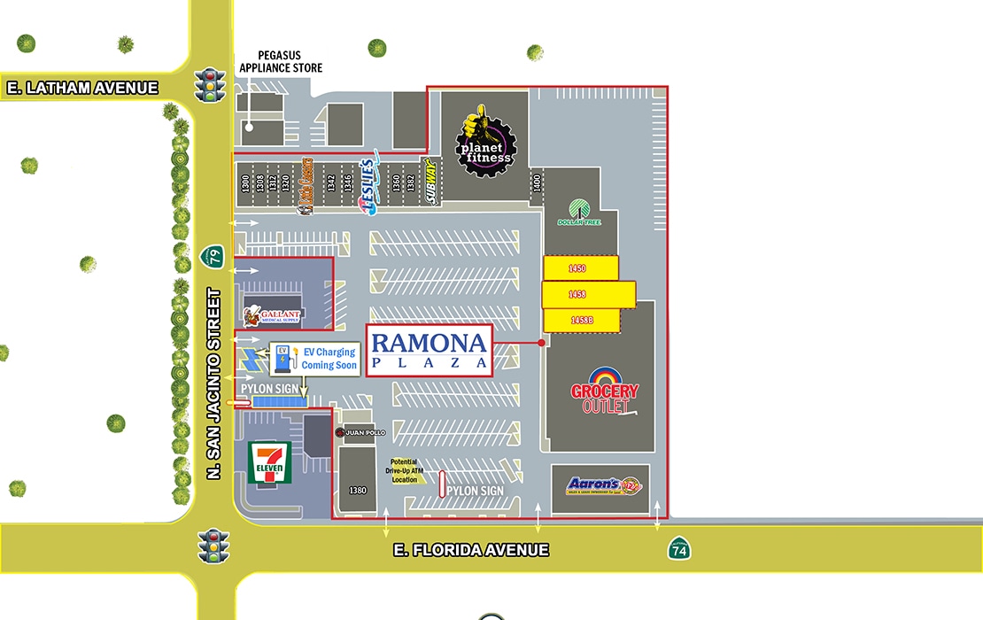 Explore the possibilities with Ramona Plaza, fronting Florida Avenue. This dynamic shopping center is perfect for retail, restaurants, medical offices, insurance, and professional services. Located opposite Hemet Global Medical Center, currently under new ownership, Ramona Plaza offers onsite security and endless potential. Floor plan, site plan, tenant mix, price, and availability subject to change without notice.