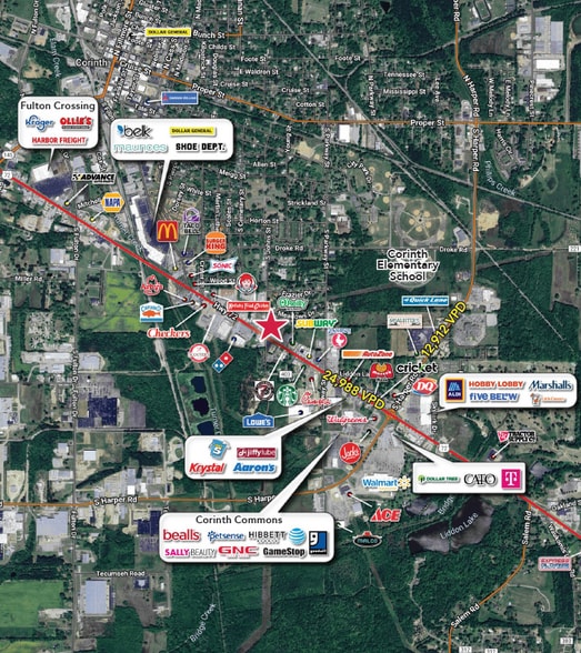 2.1 Acres - 300’ of Hwy. Frontage 1303 US-72 2.1 Acres of Commercial Land for Lease in Corinth, MS 38834