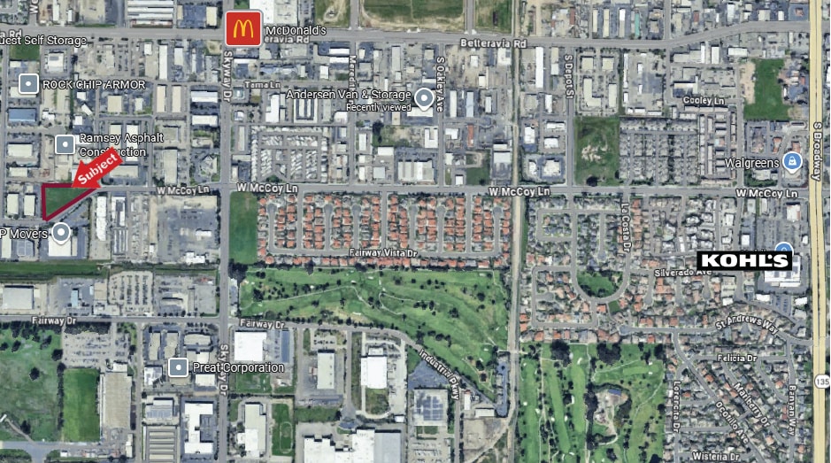 A +/-1.96-acre parcel of land in the desirable light industrial area of Santa Maria near Skyway Drive and West McCoy Lane, including a set of plans for a +/-36,400 sf building.
