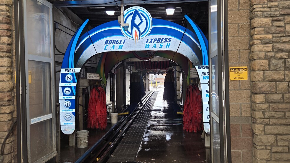 The dynamic Rocket Express Carwash established Express Service Car Wash features 110' foot conveyor, correlator, prep station, RFID station with gate, water reclamation system, presoak system, undercarriage wash system, mitters, side brushes, spot free rinse system, large dryer pack, 11- customer Central Vacuum Stations.