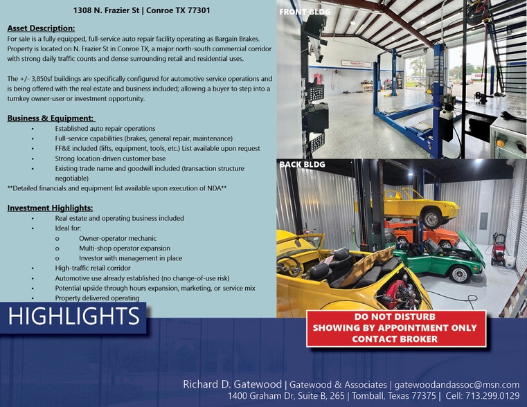 High visibility. Located less than one mile from Downtown Conroe along N. Frazier (US 75) between W. Dallas St. and Everett St.