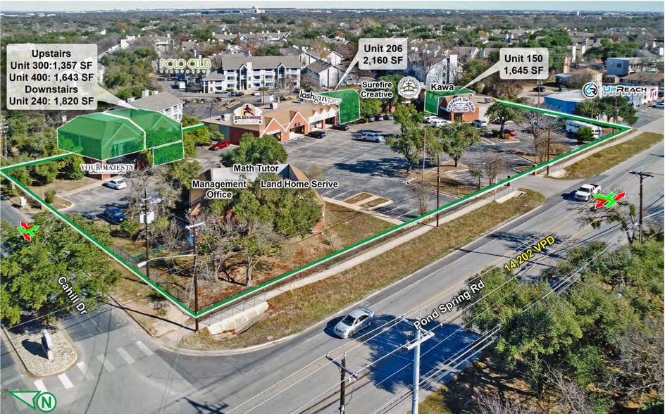 Conveniently located with immediate access to US-183, TX-45, and Mopac, Hunters Point Shopping Center offers excellent connectivity for employees and customers, serving both the surrounding residential neighborhoods and the Pond Springs Business Park daytime population. Neighborhood shopping center within Pond Springs Business Park Ample surface parking Strong local visibility and easy access Peaceful green space and professional setting Spacious, flexible layouts Retail suites, Private offices and collaborative configurations available Select move-in ready suites Ideal for retail, medical, wellness, professional office and service uses