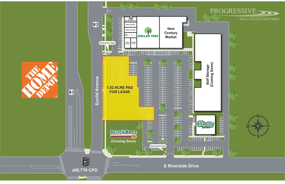 - Strong Retail Mix: Co-tenants include Dollar Tree, New Century Market, O’Reilly Auto Parts, with Dutch Bros. and a two-story self-storage facility com
