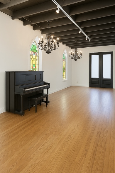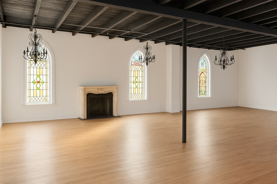 Unique Commercial Space for Lease in Historic Sanctuary Step into a truly one-of-a-kind gallery space that blends historic charm with modern functionality. Located in a beautifully repurposed former sanctuary, this 880 SF gallery offers an inspiring atmosphere with soaring ceilings, exposed wooden beams, original stained-glass windows, and elegant chandeliers that fill the space with natural light and timeless character. Features Include: Open Floor Plan: Ideal for a gallery, creative studio, boutique retail, or professional office use. Private Office: A quiet, enclosed space perfect for administrative tasks, private meetings, or focused work. Storage Room: Secure and convenient for storing inventory, equipment, or supplies. Shared Amenities: Bathroom: Clean, well-maintained, and shared with one neighboring tenant. Kitchen: Equipped with essential appliances and shared for your convenience. Don’t miss the opportunity to lease this unforgettable space in a unique and inspiring setting.