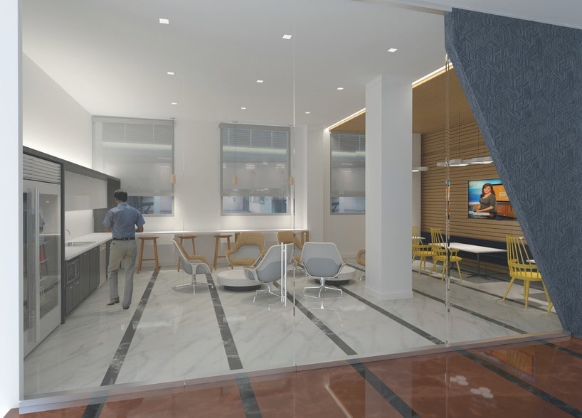 Windowed Office – Approx. 300 USF. Fully furnished with 4 desks (expandable to 5) and storage. Includes access to reception, lounge, pantry, wellness area, and copy/workroom. Building amenities feature a fitness center, rooftop terrace, and conference center. Available immediately at $1,700/month, with term through 12/31/2029. Minimum 1-year term preferred.