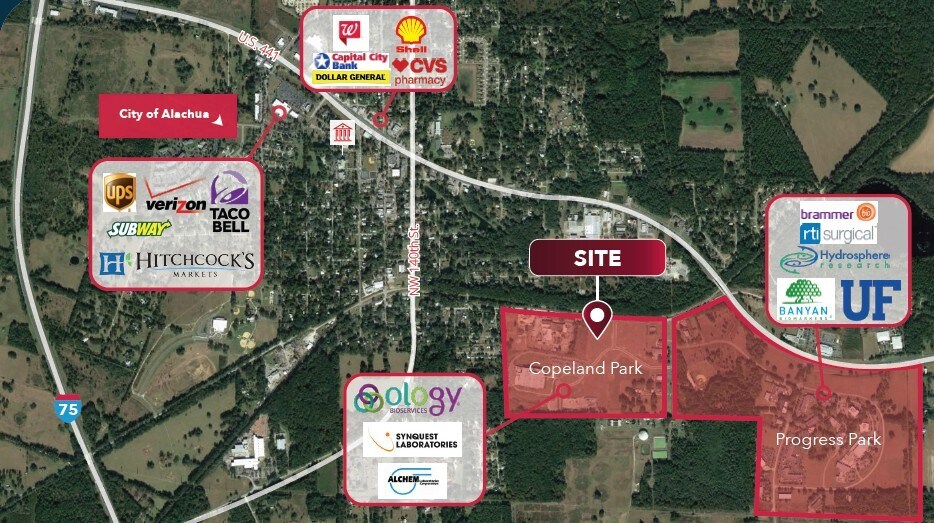 3.44-acre IOS site for sale or lease located within Copeland Park with access from Rachael Blvd. in Alachua via 60’ wide easement. This parcel is zoned as Light Industrial and is suitable for numerous uses including laboratory, technology, manufacturing and similar uses.