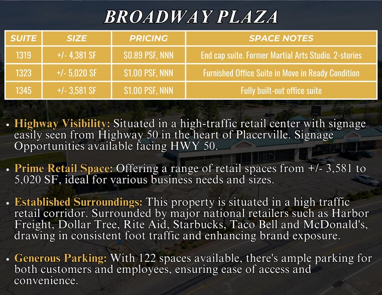 Broadway Plaza Shopping Center 1319-1353 Broadway 3,581 - 12,982 SF of Space Available in Placerville, CA 95667