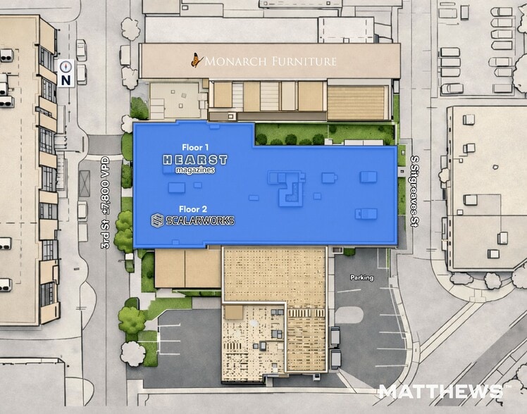 - Class A Office Conversion: Originally a 21,000 SF single-story, now a two-story, 45,644 SF (GSF) Class A office building.