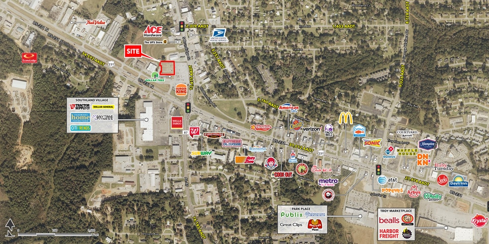 Situated in the heart of the downtown area, the location offers easy access to a variety of dining options, boutique shops, and entertainment venues. Enjoy proximity to the Troy University campus with a student enrollment of 13,745. With a thriving business community and a strong sense of community spirit, the area surrounding the property provides the perfect backdrop for a tenant looking to be part of a lively and engaging downtown environment.