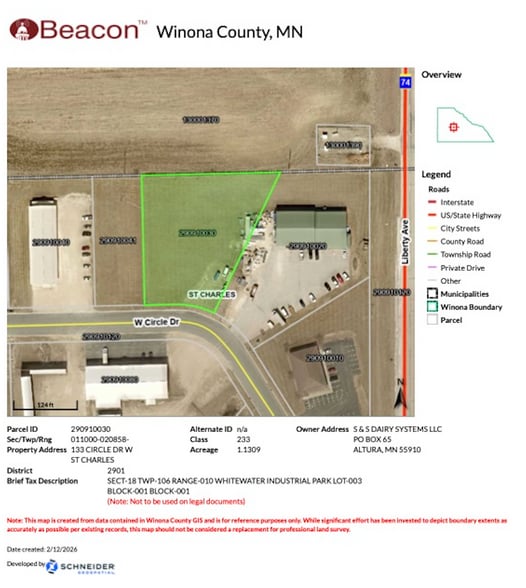 133 Circle Dr - S & S Dairy Systems 1.13 Acres of Commercial Land Offered at $204,176 CAD in Saint Charles, MN 55972