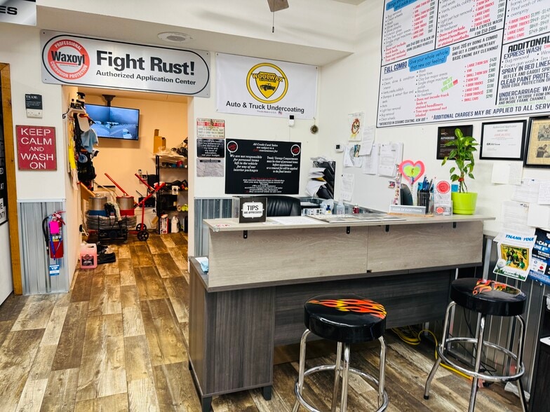Wash Me Undercoating, Detailing & Accessories has become a highly recommended and well-known business in the Rice Lake area since it was established in 2018. You see their iconic logo in vehicle windows everywhere you go, and they are top of mind when talking about the best vehicle detailing, undercoating, and vehicle accessories in the area. Since moving to its current location in 2022, Wash Me has grown and expanded, offering top quality YEAR-ROUND services and adding a wide range of products. Better yet, the location itself is one of the best spots in town. Located on South Main Street, the highest trafficked road in town, this 2,790 sq.ft. building undoubtedly gives your business the visibility it needs. The facility has the infrastructure you need to continue the already established business or expand and make it your own. Two 10x7 garage doors open to the main garage and work area, allowing for almost any size of vehicle. The back garage has a 9x7 door and contains a two-post vehicle lift rated for up to 10,000 pounds and comes with the sale of the building. Two 80-gallon commercial air compressors purchased in 2022 provide the ability to efficiently run air-powered tools and equipment. Additionally, a 24x20 detached garage allows for even more workspace. Your customers will be comfortable in the updated lounge/showroom in the storefront, which includes a guest bathroom. An employee lounge, bathroom, and storage room give you and your team some additional space outside of the shop. Extensive amount of inventory/equipment included with the sale of the business. The business is busy year-round and booked out 2-3 weeks in the summer months. Wash Me has a great local reputation! A new owner can improve/expand the business however they see fit. Auto Sales, repair, etc. The updated facilities and this fantastic location make this one of the most sought-after commercial properties in Rice Lake. Seller is willing to train the new business owner on machinery and aspects of the business. Age of building is unknown. Seize this opportunity and schedule a meeting TODAY!