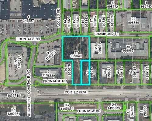 INCREDIBLE C2 COMMERCIAL LOCATION!! One of the best locations in the county! 3.29 acres made of a total of 5 C2 buildable lots on Cortez Blvd just across from Walmart Supercenter! Public water on south and north property lines. Public sewer nearby on Coastal Blvd. Annual Average Daily Traffic Count is very high at 44,000!! Located in the center of the county and in a hugely populated area...and this is the only large vacant land parcel still undeveloped right on Cortez near this busy intersection of Mariner and Cortez/Hwy 50. Also nearby is Starbucks, Wawas, Circle K, Chick-fil-a, McDonald's's, Beacon Movie Theater, Walgreens, CVS, Texas Roadhouse, Carrabba's, Chili's, Bonefish, Ruby Tuesdays, Hobby Lobby, Dick's Sporting Goods, Office Depot, Home Goods, Marshals, Belk, Bealls, Burger King, Wendy's, Arby's...and soooo much more!! The lots also have access from the road in the back, Chambord Street, for extra and convenient access in and out of the property. You have 5 BUILDABLE LOTS!! You can put multiple buildings/businesses on the property or you can have one large business with the amount of acreage you have. Each lot is approximately 100x277. The front 2 lots are zoned C2. The back 2 lots are currently R1A and should easily be rezoned to C2 to confirm with the property all around them. This sale includes 2 parcels that make up the 5 lots: R28 222 18 3040 00A0 0370 and R28 222 18 3040 00A0 0420. Public water and sewer available for connection.
