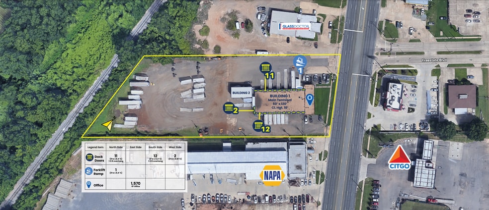 Move-in ready truck terminal with excellent visibility and convenient access located on LA Highway 1 between I-20 and I-220. The property features a functional main terminal building with extensive dock capacity, covered loading on both sides, and a well-configured office layout, plus a separate high-clearance metal warehouse. The main terminal building includes approximately 6,000 square feet of warehouse space with a 10' clear height and approximately 1,570 square feet of office space. The office configuration includes one private office, a large open work area, two restrooms in the front office area, and a warehouse office with break room, locker room, and restroom. A separate ±1,250 square foot metal warehouse provides additional storage or operational flexibility and features a grade-level drive-in door with a 24' clear height. The site is fully fenced and rocked, with paved asphalt truck court areas and an additional ±1.3 acres of rocked yard area, all under fence. The property is lighted, well maintained, and suited for trucking, logistics, or distribution users requiring dock access and secured outdoor storage. North Side: • 11 dock doors • Door size: 8' wide x 8'4" high • Covered docks with ±7.5' overhang • Includes 1 forklift ramp door o Forklift ramp door size: 8' wide x 8'4" high South Side: • 12 dock doors • Door size: 8' wide x 8'4" high • Covered docks with ±7.5' overhang West Side: • 2 dock doors • Door size: 8' wide x 8'10" high Secondary Metal Warehouse (Separate Building) • ±1,250 SF • 24' clear height • West side grade-level drive-in door o Door size: 16' wide x 14'6" high Strategically located along N. Market Street, a major north/south corridor in Shreveport, this property offers excellent access and visibility between I-20 and I-220. The site benefits from proximity to major industrial and distribution users in the area, including the Amazon Fulfillment Center, Loomis, Frito-Lay distribution facilities, and other logistics operations. Frontage along N. Market Street provides strong exposure on a heavily traveled route serving North Shreveport and the greater regional industrial market.